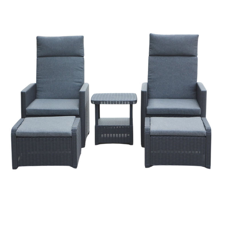 Ваш дім розширюється за межі звичайного, перетворюючи затишок на безкраї простори натхнення та відпочинку. З набором садових меблів GARDEN LINE LYON ця мрія стає реальністю. Кожен елемент цієї колекції - втілення майстерності та дизайнерської думки, створене з метою додати краплину розкоші до Ваших неповторних моментів на свіжому повітрі. Розміри крісел (75 х 66 х 110см) ідеально підходять для будь-якого відкритого простору, створюючи затишок і комфорт. Розкладні крісла, що охоплюють Вас комфортом, столик для затишних вечорів, і підніжки, що запрошують розслабитися, - кожен елемент кричить про неперевершену якість і стиль.
