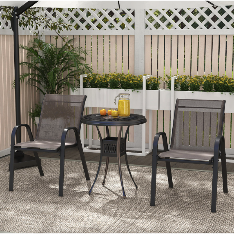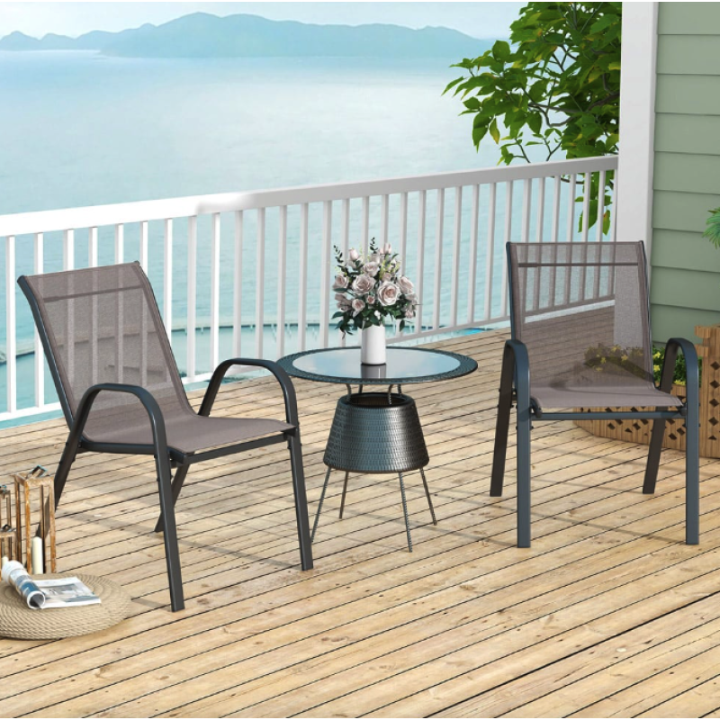 Уявіть собі ідеальний день: сонце лагідно торкається шкіри, аромат свіжого повітря розливається навколо, а ви - зручно вмостилися у стильному кріслі з високою спинкою та підлокітниками. Комплект садових стільців Costway Patio - це втілення сучасного літнього комфорту. Вони створені для того, щоб подарувати вам справжнє задоволення від перебування на вулиці - будь то ранкова кава на балконі чи тепла вечеря біля басейну. Міцна металева конструкція, дихаюча тканина та естетичний синій колір перетворюють ці крісла на справжню прикрасу вашого патіо або саду. Цей набір - не просто меблі, це стиль життя, у якому зручність і витонченість йдуть пліч-о-пліч.