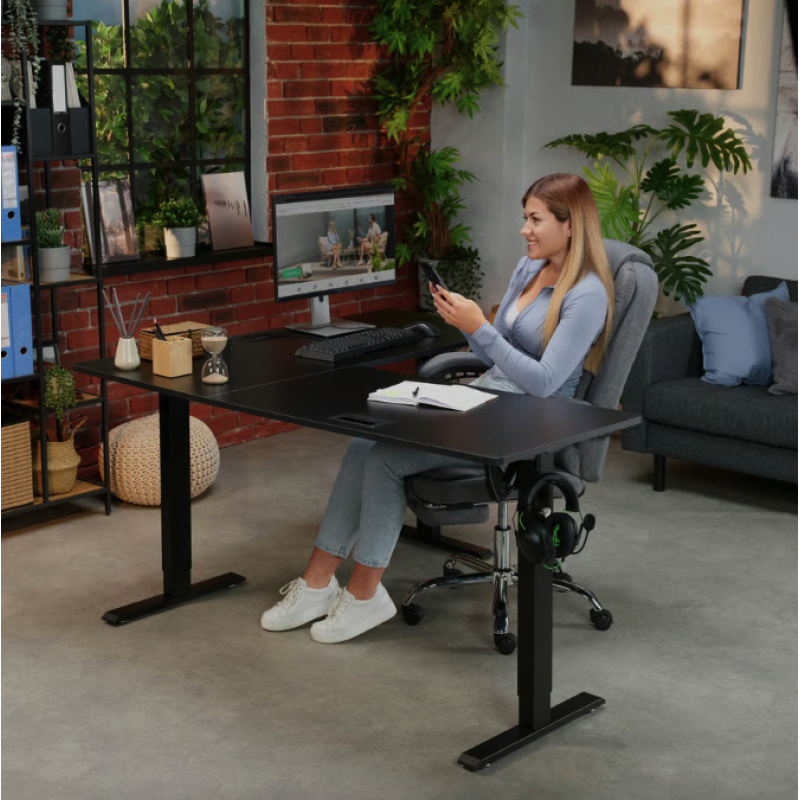 Комп'ютерний кутовий стіл Di Volio Montaro з регульованою висотою 160 × 140см - це ідеальне поєднання інноваційного дизайну, ергономіки та високої функціональності. Цей кутовий комп'ютерний стіл чудово підходить як для домашнього офісу, так і для корпоративного середовища, де цінується продуктивність і комфорт. Завдяки електричному регулюванню висоти, Montaro дозволяє працювати не лише сидячи, а й стоячи, зберігаючи здоров'я хребта та покращуючи концентрацію. Письмовий стіл Montaro від Di Volio - ідеальне рішення для тих, хто цінує функціональність, комфорт та сучасний дизайн.