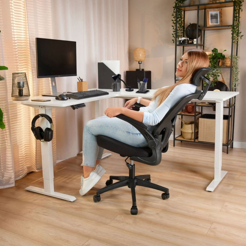 Комп'ютерний кутовий стіл Di Volio Montaro з регульованою висотою лівий, білий