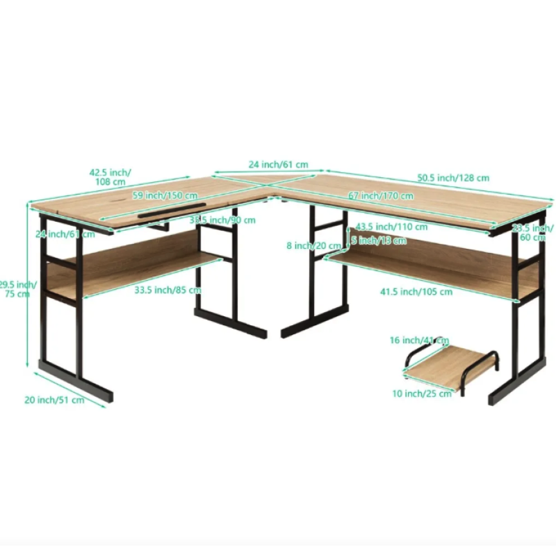 У світі, де функціональність має поєднуватися зі стилем, Costway Fulton стає справжнім відкриттям для тих, хто цінує комфорт, сучасний вигляд і ергономіку. Цей кутовий комп'ютерний стіл у стилі Loft створено не лише для продуктивної роботи, а й для візуального задоволення. Він ідеально адаптується до будь-якого кута приміщення завдяки формі "Г", має підйомну стільницю, що дозволяє знайти ідеальний кут для малювання чи креслення, та оснащений відкритими полицями для зберігання. Його загальні розміри 170 × 150 × 75см, а міцна конструкція з металу та ДСП витримує до 205кг навантаження. Стіл продумано до деталей - від регульованих опор, що стабілізують навіть на нерівній підлозі, до мобільної підставки під системний блок. Це не просто робоче місце - це інтер'єрне рішення для сучасного способу життя