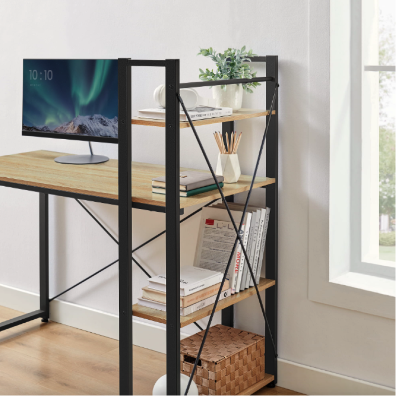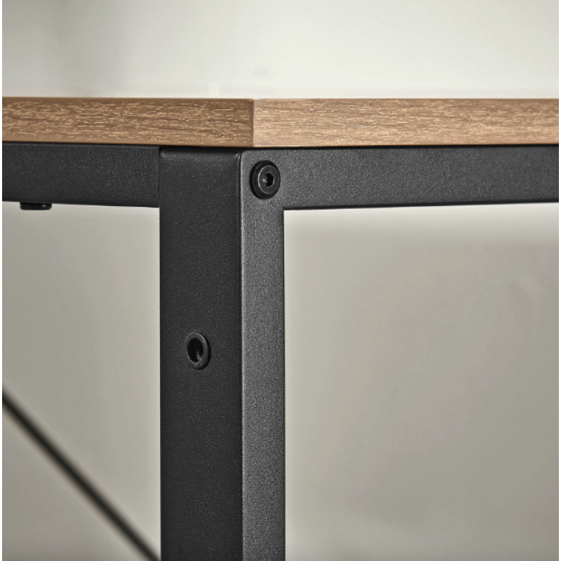 Шукаєте надійний, стильний і зручний стіл, що стане центром вашого робочого простору? Комп'ютерний стіл Leobert Devoko у стилі Loft - це поєднання мінімалізму, індустріального шарму та практичності, яке створить ідеальні умови для роботи, навчання або творчості. Його дизайн у стилі Лофт, стилізований під натуральну деревину, у поєднанні з міцною металевою основою надає меблям стійкість і довговічність. Завдяки просторій робочій поверхні ви зможете зручно розташувати ноутбук, монітор, принтер, книги, лампу та інші аксесуари. Додаткові бокові полиці надають більше місця для організації, дозволяючи зберігати книги, вазони, фоторамки та інші корисні речі. Глибина столу та регульовані ніжки гарантують комфортне використання, навіть якщо ваша підлога не ідеально рівна. Письмовий стіл для дому стане універсальним доповненням до інтер'єру вітальні, спальні, кабінету або офісу, забезпечуючи затишок, організованість та естетику. Якщо ви цінуєте стиль, функціональність і комфорт, Leobert Devoko - це саме той письмовий стіл, який ідеально доповнить ваш простір!