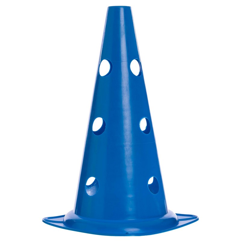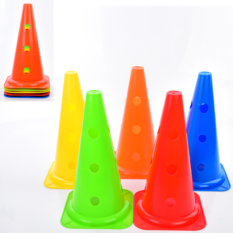 Фішка-конус пластикова, кольорова, з отворами для штанги призначена для тимчасової розмітки ігрових полів та трас змагань. Яскраві кольори фішок помітні на будь-якому типі покриття спортивного майданчика. На виробі є отвори, розташовані на різній висоті. Вони можна вставляти поперечки для встановлення бар'єрів, устаткування перешкод. Ці конструкції потрібні на різних змаганнях, у дитячих спортивних установах.