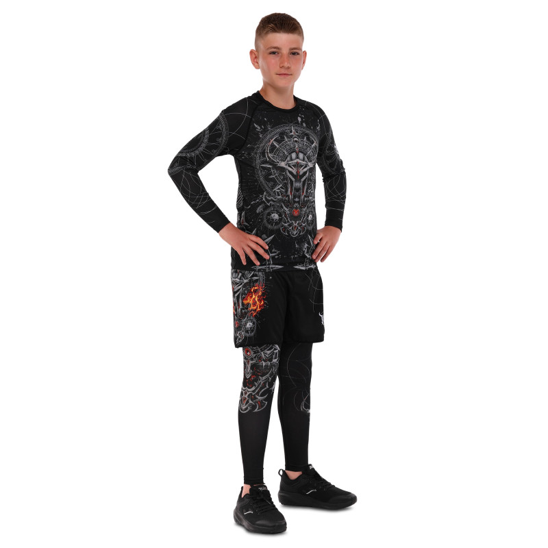 Костюм компресійний дитячий рашгард лонгслів штани та шорти VNM UFC FIGHT WEEK 2XS-L, чорний-сірий 9541B-9641B-V5032 L