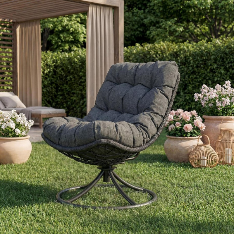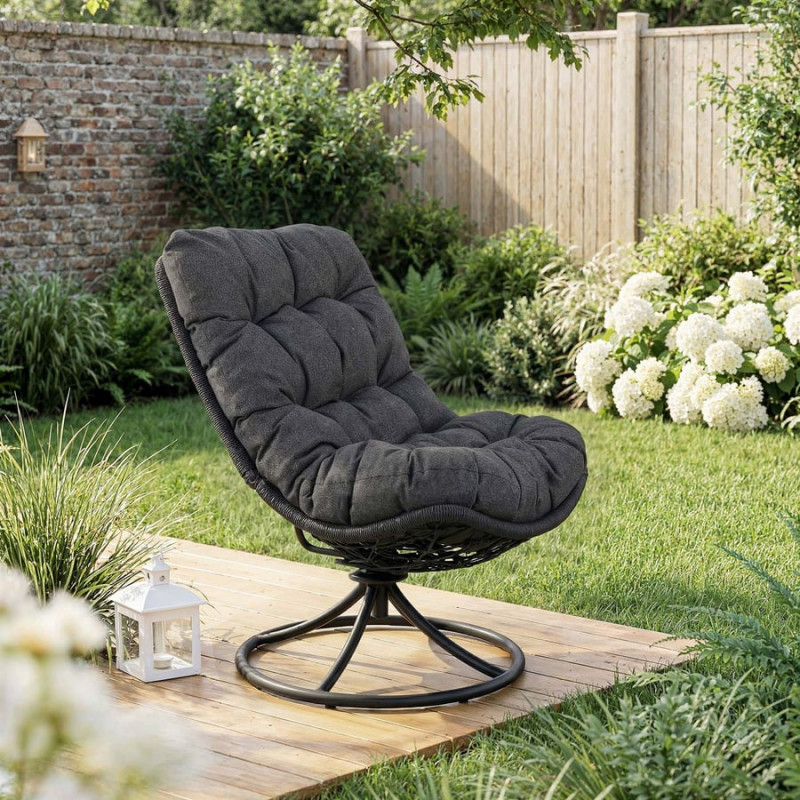 Поворотне крісло-кокон Melia чорного кольору - це більше, ніж просто меблі. Це ваш особистий простір відновлення, де можна сховатися від щоденної метушні, видихнути й нарешті відчути справжній комфорт. Знайомо, коли є тераса чи балкон, але немає місця, де хочеться залишатися довше? Саме тому все більше людей обирають саме крісло кокон - воно створює відчуття затишку, приватності та повного розслаблення. Це той самий момент, коли звичайний відпочинок перетворюється на ритуал.