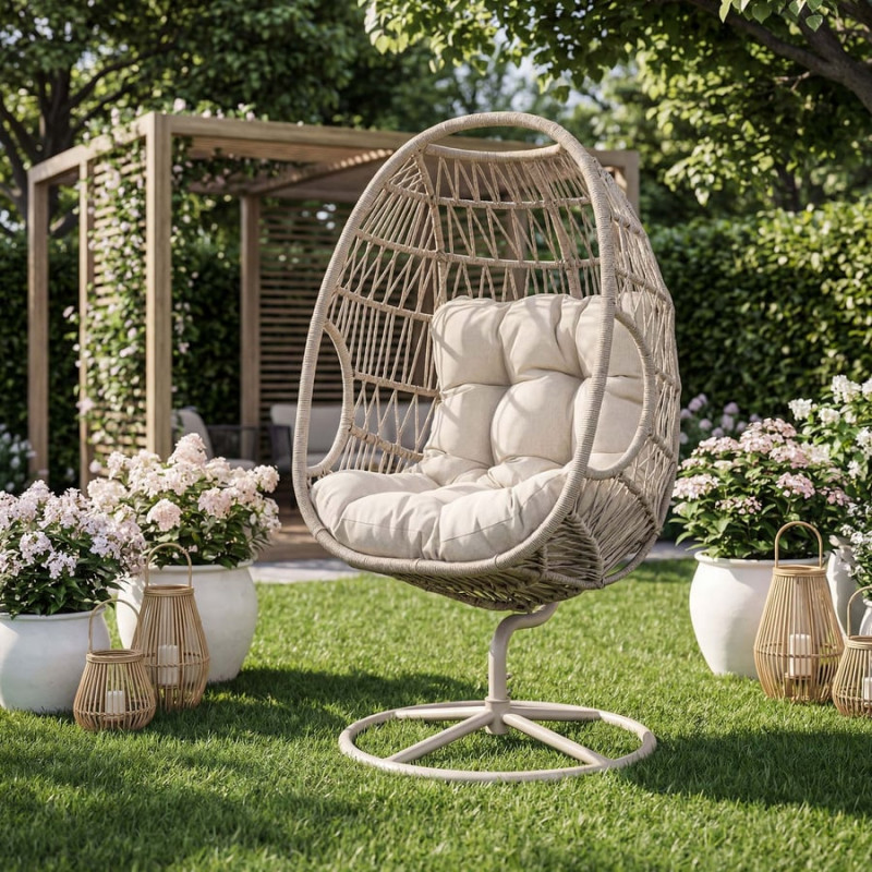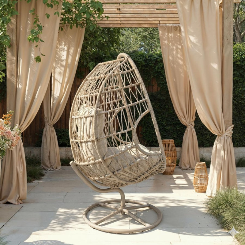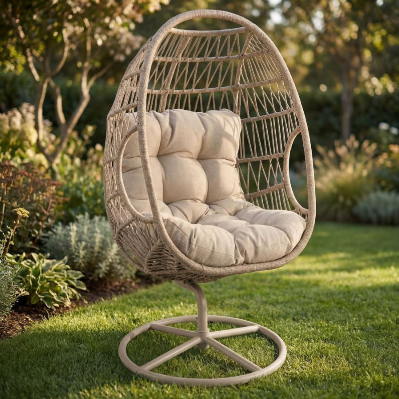 Світлий кокон у поєднанні з м'якою подушкою формує гармонійний простір, який ідеально підходить як садове крісло кокон, рішення для балкона чи тераси, або як стильний акцент у вітальні. Це не просто меблі - це спосіб створити атмосферу, де хочеться залишатися довше. Завдяки сучасному вигляду крісло легко вписується як у ландшафтний дизайн, так і в інтер'єри в стилі лофт.