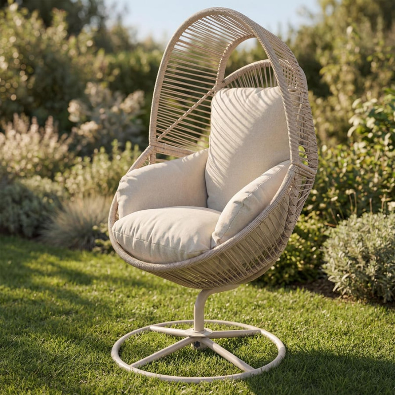 Крісло-кокон садове обертове Di Volio Vico анатомічна подушка, бежевий