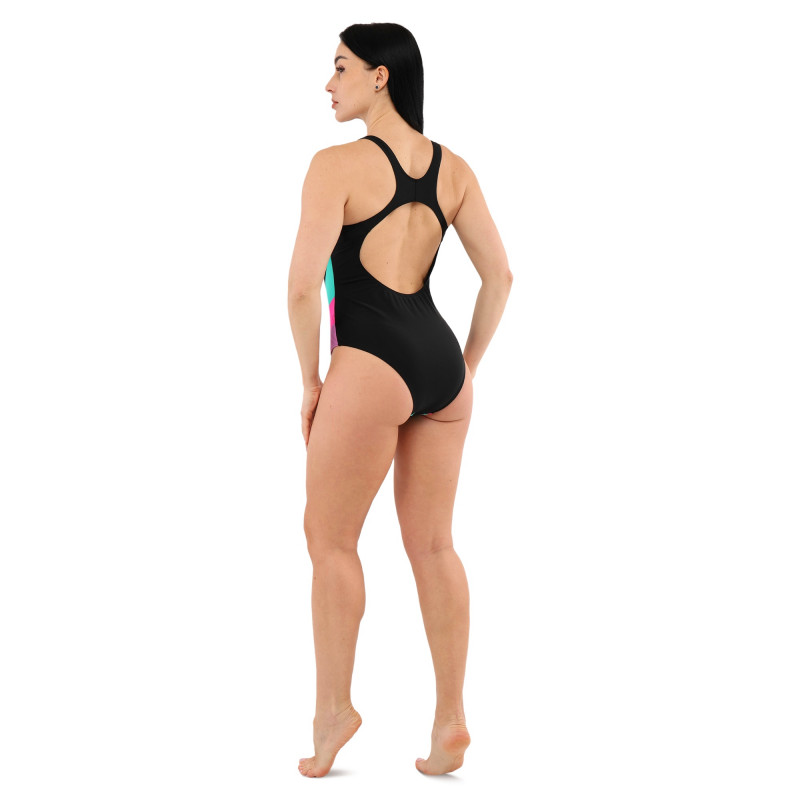 Купальник для плавання суцільний жіночий чорний-фіолетовий-бірюзовий PL-7671-1 46