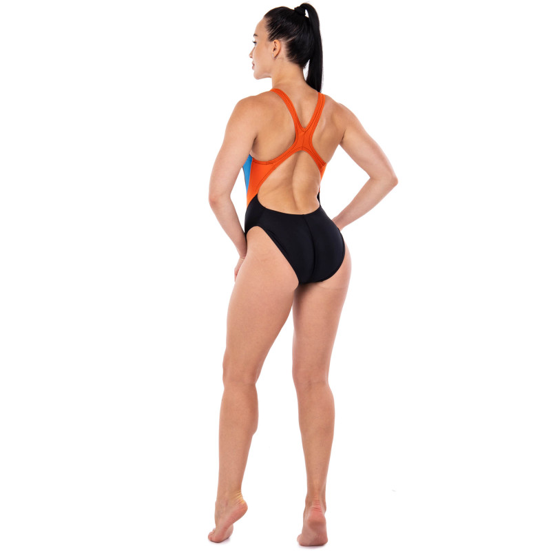 Купальник для плавання YINGFA злитий жіночий Чорно-оранжево-синій Y-976-2 M