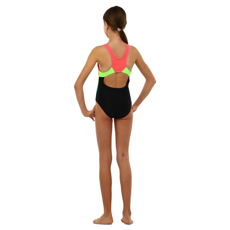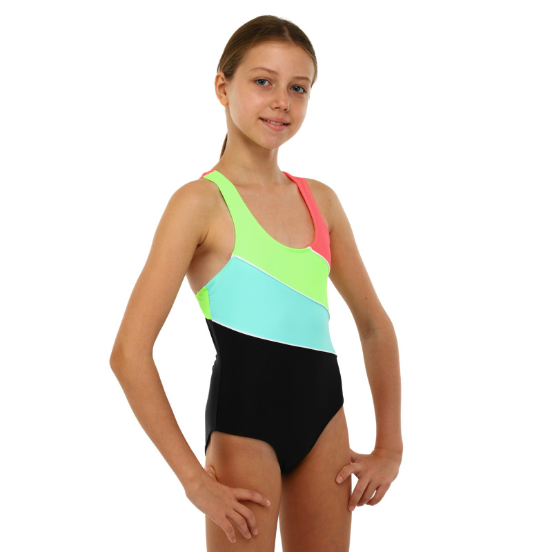 Купальник для плавання злитий дитячий 6-12років чорно-бірюзово-салатово-оранжевий PL-2451-1