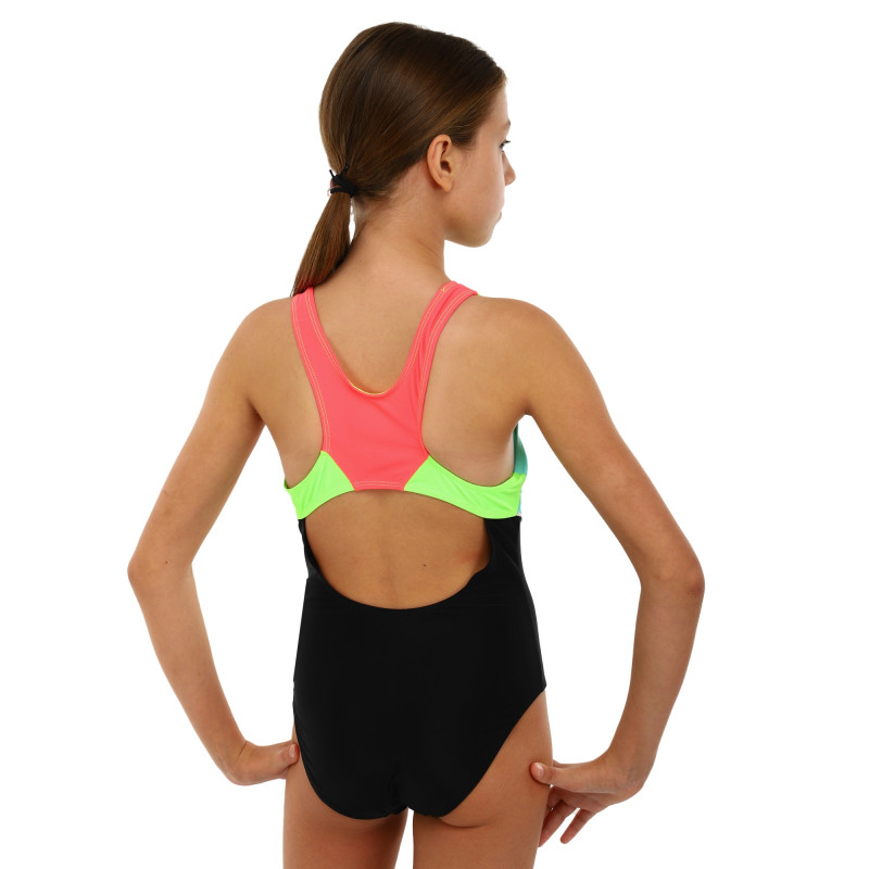 Купальник для плавання злитий дитячий 6-12років чорно-бірюзово-салатово-оранжевий PL-2451-1 6