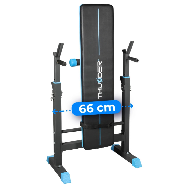 - Регульовані стійки: дозволяють відрегулювати висоту, необхідну для комфортного тренування.