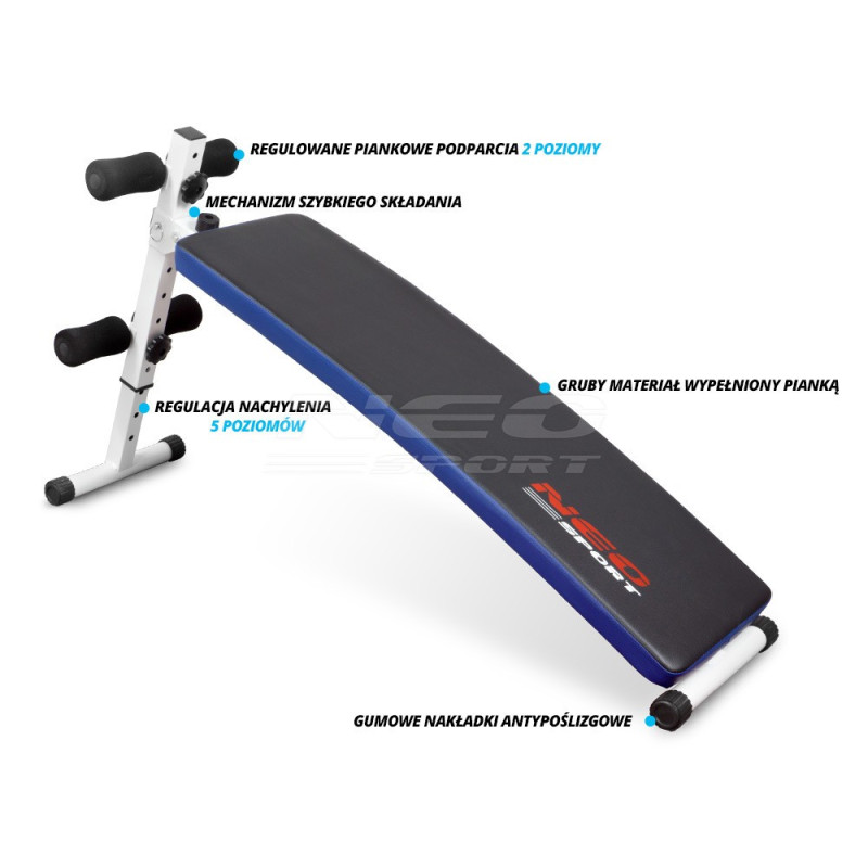 Ми представляємо вам розширений профіль Neo-Sport, призначений для домашніх тренажерних залів і багато іншого. Наша лава має регульовану висоту ноги, яка відповідає за нахил сидіння. Завдяки гумовим кінцях підстав немає ризику дряпати домашній підлогу. Сильно зшиті у привабливих кольорах і товста піна для сидіння забезпечують максимальний комфорт як для тренування нижній і верхній м'язів.