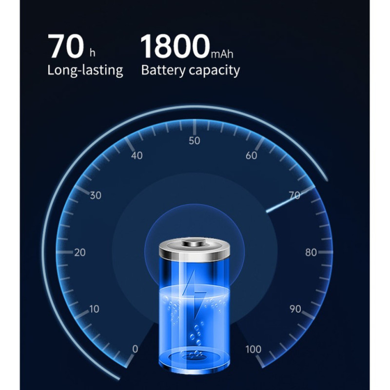 - 70 год роботи на одному заряді. Ліхтар живиться від вбудованого акумулятора 1800 мАгод (3.7 В) та оснащений зарядним портом USB-C у нижній частині корпусу. Процес заряджання триває 2.5 год. Бічний індикатор відображає статус елемента живлення.