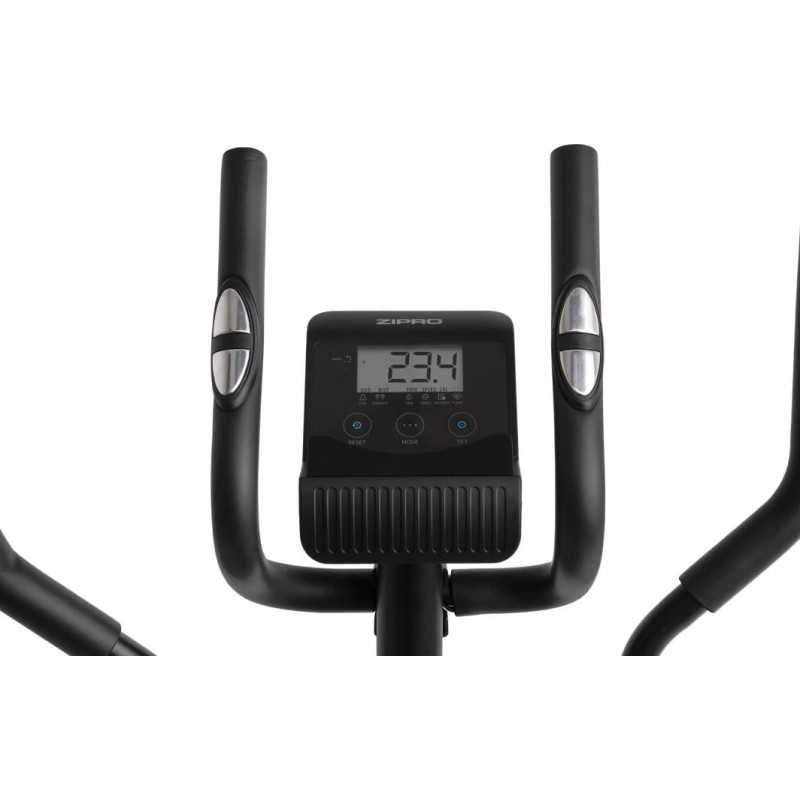 Великі підставки для ніг і міцні рухомі ручки дають відчуття безпеки під час тренувань. Конструкція еліптичного тренажера ZIPRO Burn зручна, профільовані ручки вкриті зручним пінопластом, а розташування на кермі з датчиками серцевого ритму дозволяє перевіряти пульс, не впливаючи на плавність рухів і ритмічність вправи. .