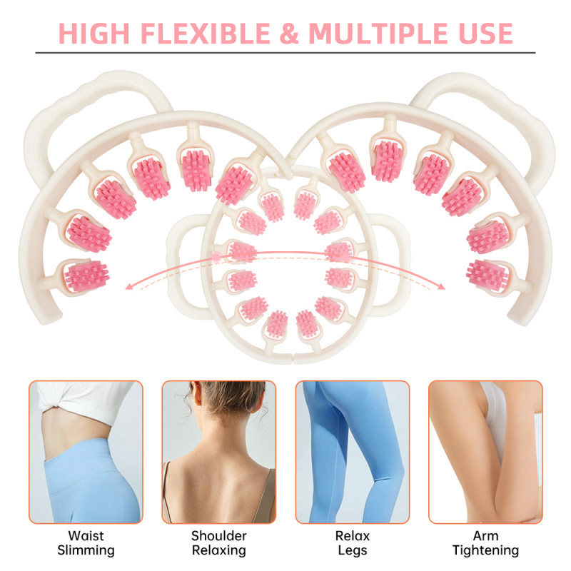 Масажер для тіла виготовлений формою аксесуар ідеально підходить для стимуляції шийного відділу спини, ноні, руки і навіть живота. Аксесуар стимулює лагідність у тканинах і розслаблює м'язи завдяки 12 роликам.