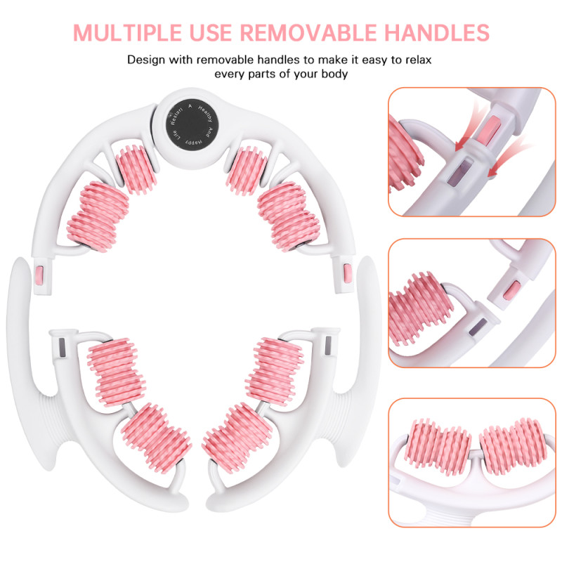 Масажер зі знімними ручками – універсальний пристрій для розслаблення м'язів всього тіла. Оснащений 8 масажними роликами, які ефективно стимулюють кровообіг, знімають втому та м'язову напругу після тренування або тривалого сидіння.