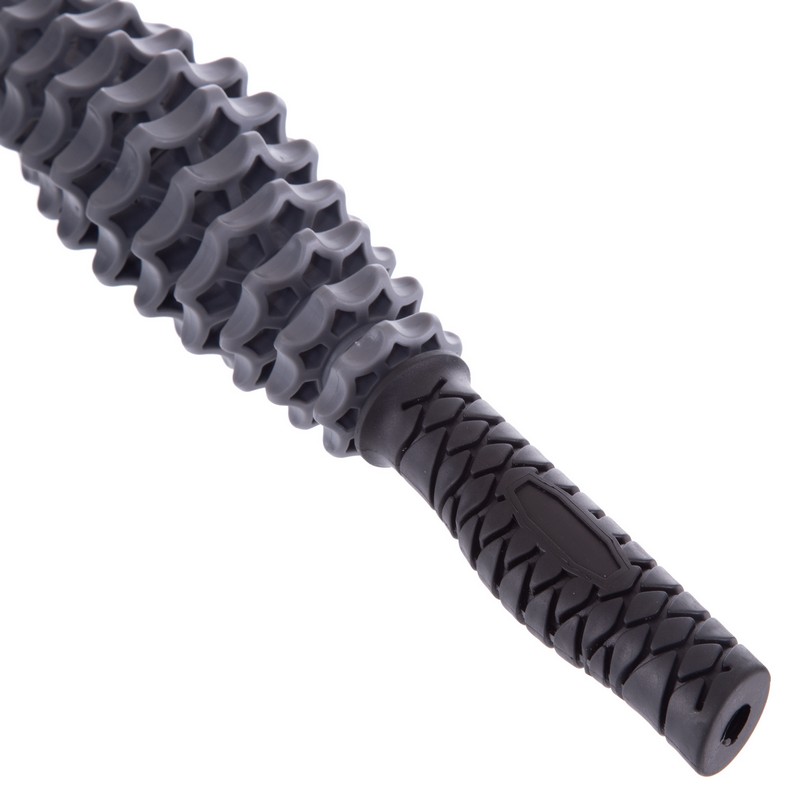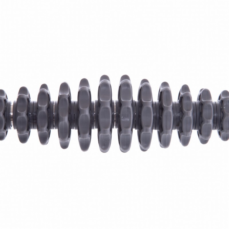 Масажер-палиця є зручним і функціональним інструментом, оснащеним 12 роликами, форма яких нагадує зубці шестерень. Ця особливість дозволяє рівномірно розподіляти навантаження та ефективно опрацьовувати навіть глибокі м'язи. Різна величина роликів забезпечує плавний вплив - від потужнішого до м'якого, що робить масаж комфортним і результативним.