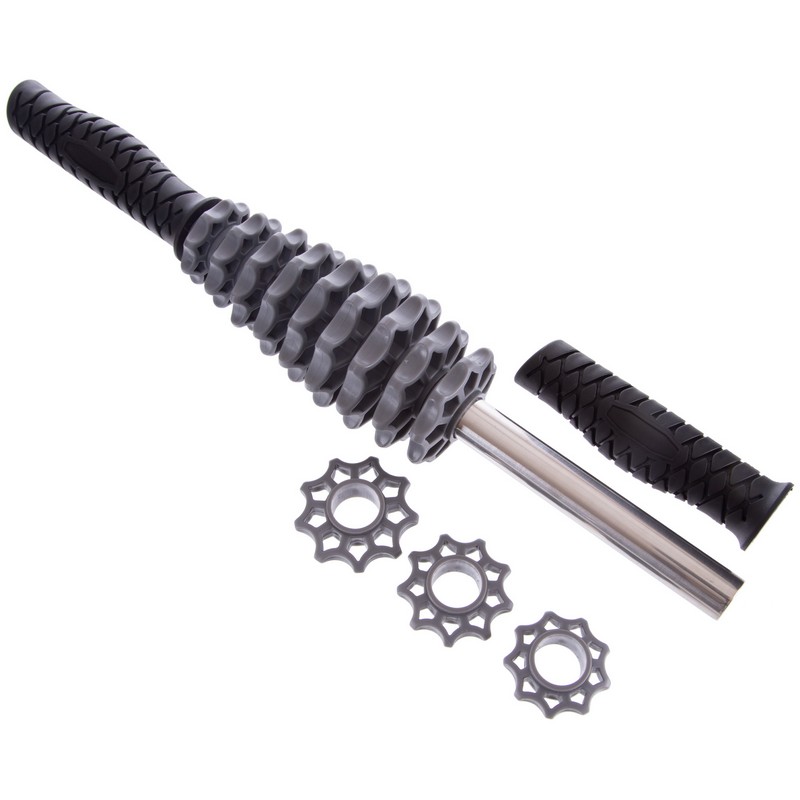Масажер-палиця є зручним і функціональним інструментом, оснащеним 12 роликами, форма яких нагадує зубці шестерень. Ця особливість дозволяє рівномірно розподіляти навантаження та ефективно опрацьовувати навіть глибокі м'язи. Різна величина роликів забезпечує плавний вплив - від потужнішого до м'якого, що робить масаж комфортним і результативним.