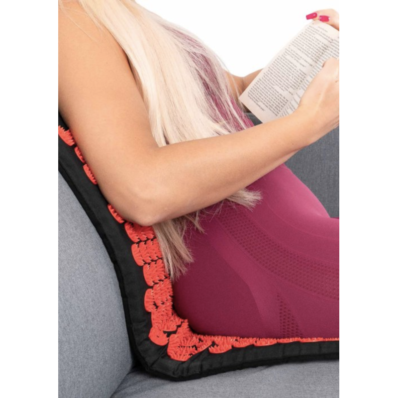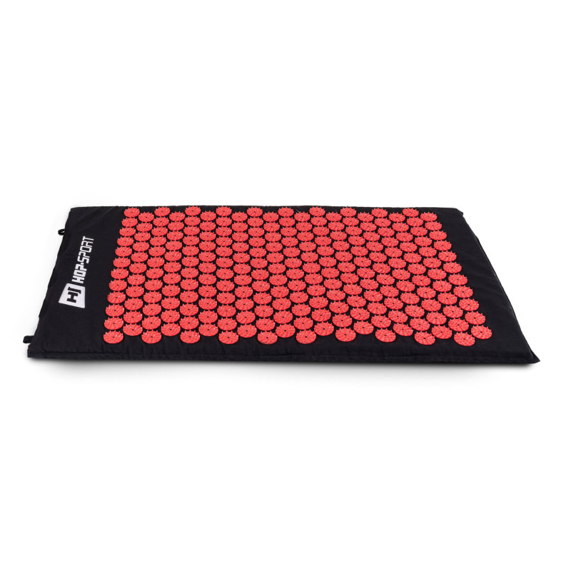 Мат для акупунктури HS-C072AM червоний Мат для акупунктури - це простий у використанні і ефективний засіб для релаксації, який завдяки своїй дії допомагає зняти напругу м'язів і покращує кровообіг. Рекомендується, зокрема, людям, що страждають від болю в спині, головного болю, а також в разі безсоння. Килимок HS-C072AM оснащений 6210 пластиковими шипами, розміщеними на спеціально розроблених розетках, які забезпечують інтенсивний розслабляючий масаж всього тіла.