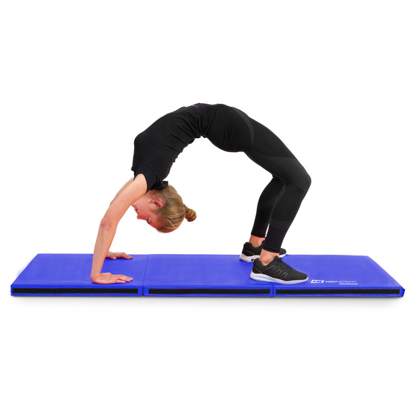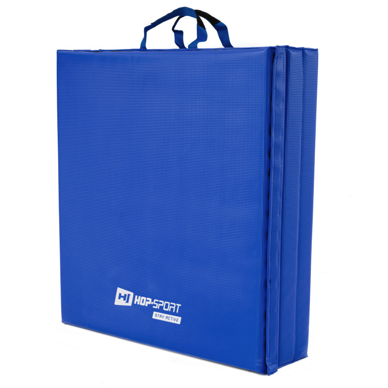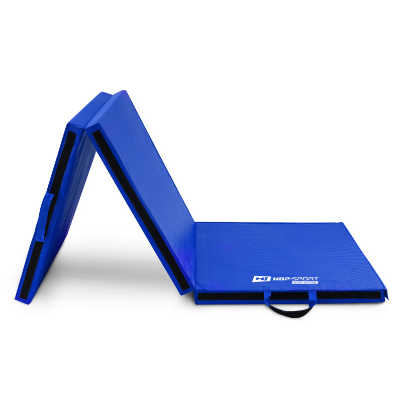 Спортивний складаний жорсткий мат 5см синій HS-065FM Hop-Sport надасть вам міцну і зручну базу для інтенсивних тренувань. Ця модель з високим ступенем твердості, високою еластичністю і пружністю рекомендується для занять бойовими мистецтвами, гімнастикою або акробатикою, пропонуючи відмінну амортизацію ударів. Можливість складання до менших розмірів полегшує транспортування і зберігання продукту.