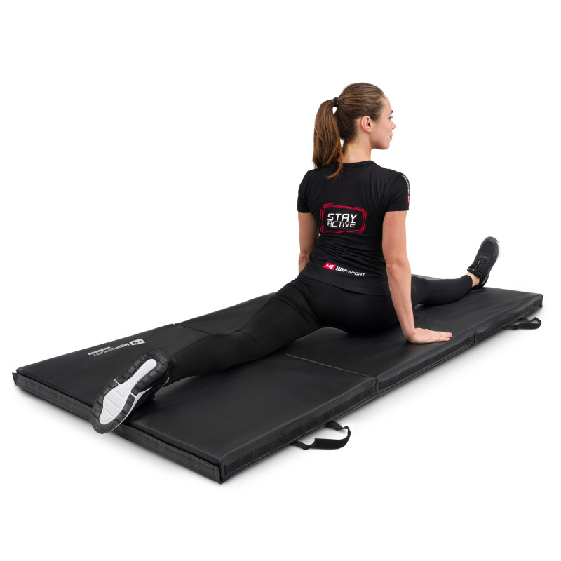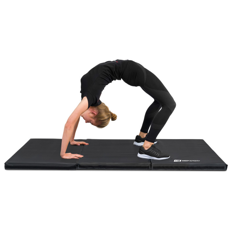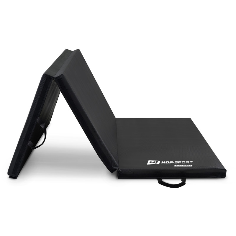 Спортивний складаний жорсткий мат 5см чорний HS-065FM Hop-Sport надасть вам міцну і зручну базу для інтенсивних тренувань. Ця модель з високим ступенем твердості, високою еластичністю і пружністю рекомендується для занять бойовими мистецтвами, гімнастикою або акробатикою, пропонуючи відмінну амортизацію ударів. Можливість складання до менших розмірів полегшує транспортування і зберігання продукту.