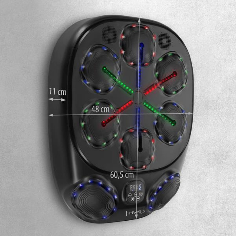 Мішень боксерська електронна HMS TB10 — це сучасний тренувальний пристрій, який має збільшену площу, що забезпечує більше простору для нанесення ударів і сприяє природності рухів під час тренування. У нижній частині конструкції розміщено два додаткові тренувальні сегменти. Такий формат дозволяє опрацьовувати широкий спектр технік — майже як на класичному боксерському мішку, але в компактному та мультимедійному виконанні, оптимальному для домашнього використання.