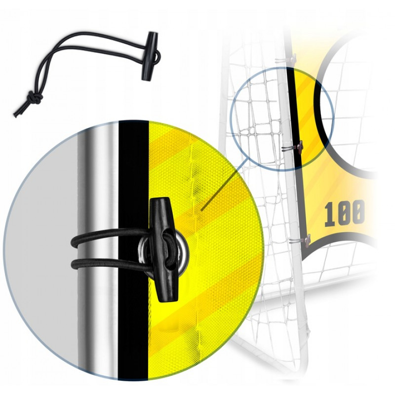 Мішень для футбольних воріт Neo-Sport NS-1479 300 × 200 см — це професійний тренувальний аксесуар для великих футбольних воріт, який допомагає відпрацьовувати точність ударів у різні зони. Виготовлена з міцного водостійкого матеріалу з якісним друком, легко кріпиться завдяки еластичним затискачам і витримує навіть найсильніші удари. Ідеально підходить для воріт розміром 300 × 200 см.