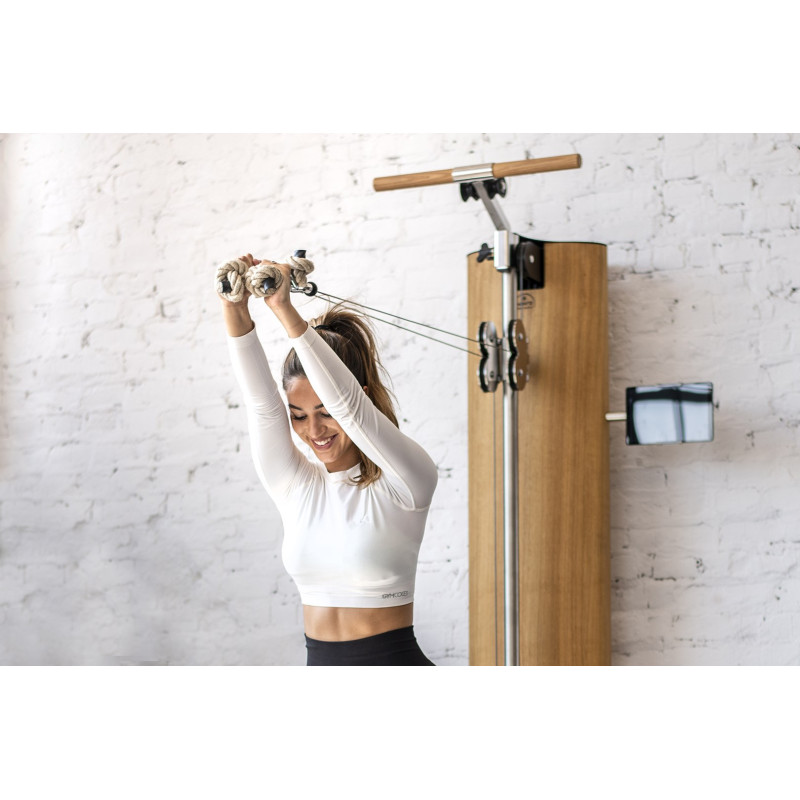 - Односторонні та двосторонні тренування батерфляєм - найбільша перевага SlimBeam - це тренування батерфляєм. Вона дозволяє двосторонні та односторонні тренування, регулюється по висоті та обертається. Покриті тягові канати плавно ковзають по роликових підшипниках для оптимального та тихого тренування.
