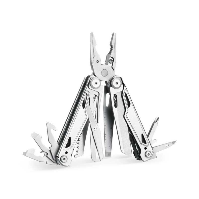 У руків’ях заховано ще цілу низку корисних елементів: гострий ніж, пилка з серейторним заточуванням, ножиці, напилок із лінійкою, відкривачки для пляшок і консервів, набір викруток, стропоріз та шило. Кожен інструмент легко дістається одним пальцем і чітко фіксується у робочому стані.