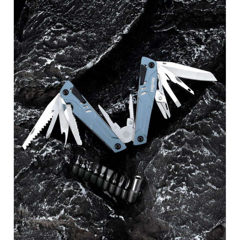 Крім того, в комплекті передбачені гайкові ключі різних розмірів, плоскі викрутки, хрестоподібні викрутки та втулка. Для зберігання даного мультиінструменту є спеціальний міцний чохол та коробка. Мультитул компактним чином складається, і у складеному вигляді не займе багато місця у спорядженні туриста. Його можна завжди тримати при собі, щоб використовувати буквально будь-якої хвилини. Якісні та надійні пристрої у складі мультитула допоможуть впоратися з різними побутовими завданнями, наприклад: нарізування, стругання, розпил, виконати невеликі ремонтні роботи та багато іншого. Такого великого комплекту різних інструментів вистачить для всіх основних видів діяльності, з чим стикається турист на природі. Габарити мультитула досягають 104*44 мм.