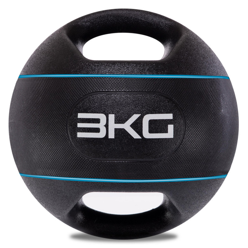 Медбол м'яч медичний дворучний з хватами Zelart TA-7827-3 вага-3кг d-25см чорний-бірюзовий