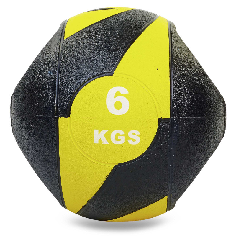 Медбол м'яч медичний дворучний з хватами Record FI-5111-6 6кг чорний-жовтий