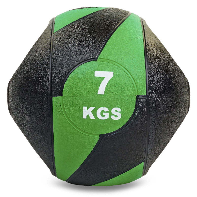 Медбол м'яч медичний дворучний з хватами Record FI-5111-7 7кг чорний-зелений