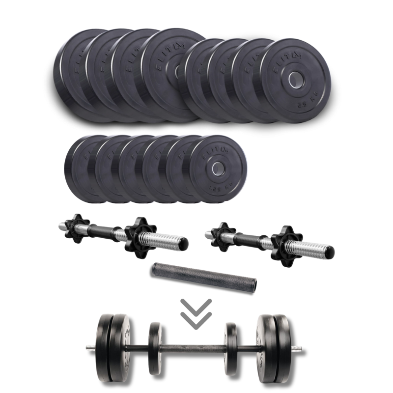 Набір Elitum Titan 39кг - це ідеальне рішення для тих, хто хоче ефективно тренуватися вдома, не обмежуючи себе в можливостях. Інвестуйте у свій комфорт і результат уже сьогодні!