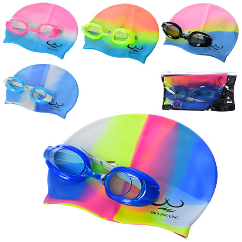 Набір окуляри + шапка для плавання D25721 Мультиколір