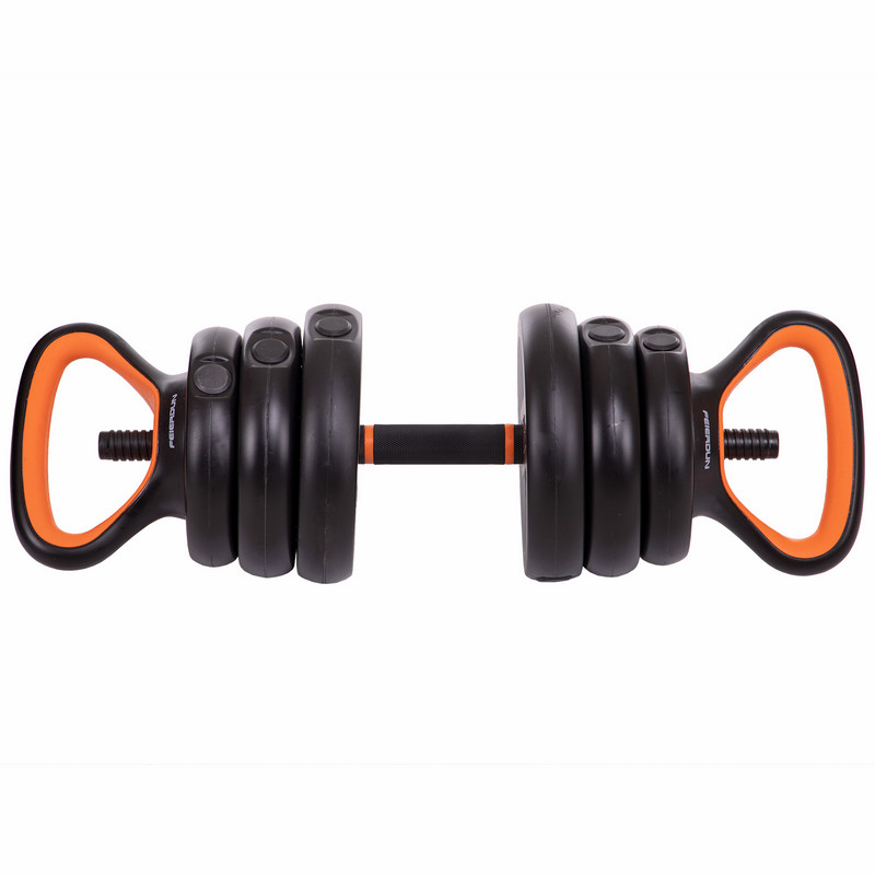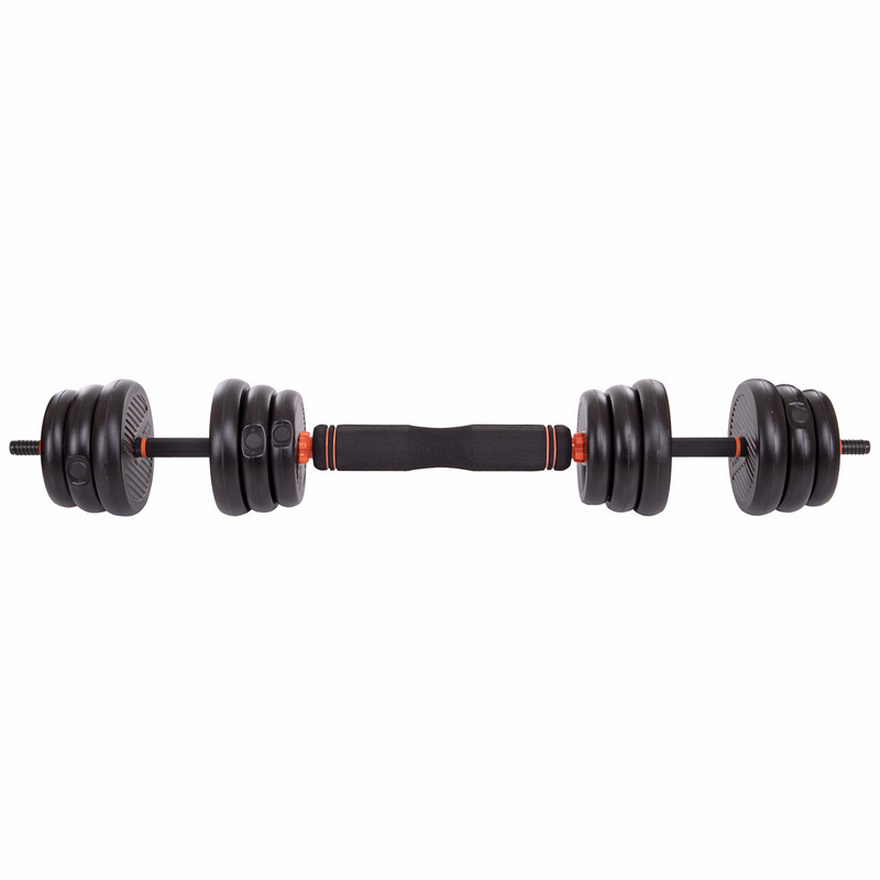 Конструкція "3 в 1" надзвичайно універсальна: всього один комплект перетворюється на гантелі, гирю та повноцінну штангу. Завдяки подовжувачу грифа довжиною 26 см, легко зібрати пряму штангу і пропрацювати основні м'язові групи. Такий формат ідеально підходить для обмеженого простору і позбавляє від необхідності купувати кілька снарядів.