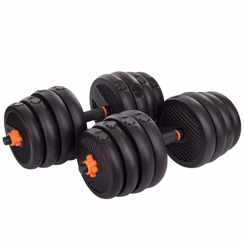 Загальна маса набору — 30 кг, що робить його відмінним варіантом для прогресивного навантаження. Можливість додавати вагу регулюється з малим кроком, дозволяючи адаптувати тренування під свої цілі. Наявність яскравого кольорового маркування на кожному бліні спрощує швидке налаштування ваги й додає візуальної привабливості.
