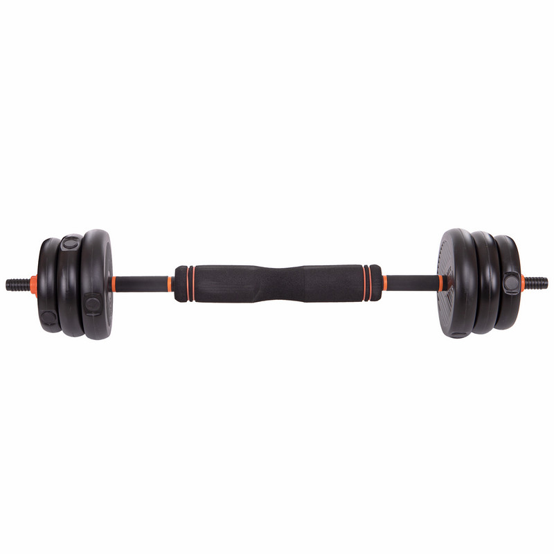 Конструкція "3 в 1" надзвичайно універсальна: всього один комплект перетворюється на гантелі, гирю та повноцінну штангу. Завдяки подовжувачу грифа довжиною 26 см, легко зібрати пряму штангу і пропрацювати основні м'язові групи. Такий формат ідеально підходить для обмеженого простору і позбавляє від необхідності купувати кілька снарядів.
