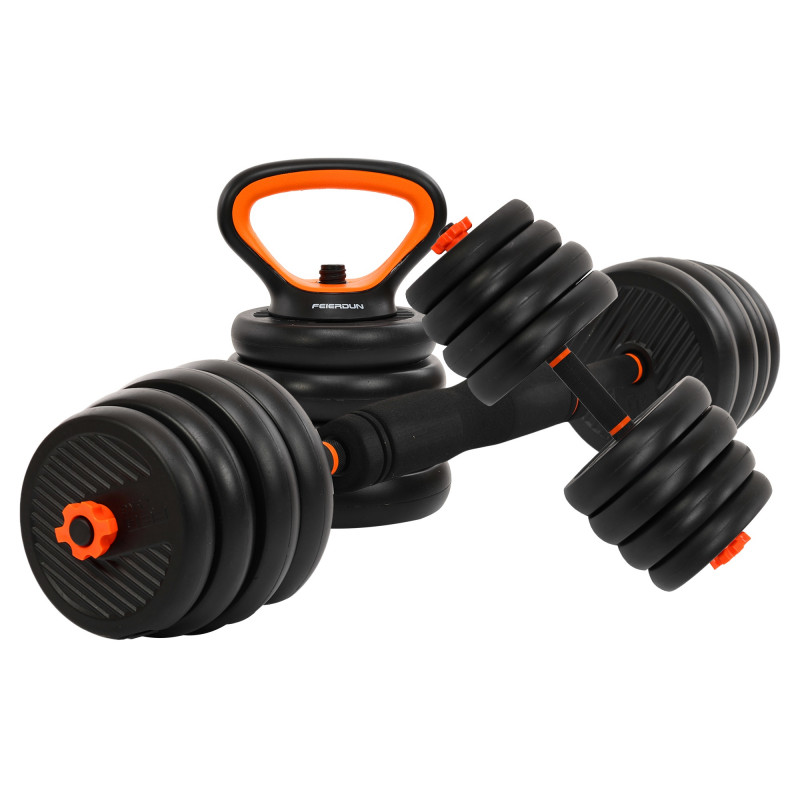 В комплекті:Млинці: 1,5 кг-4шт, 2кг-4шт, 2,5 кг-8шт, Гриф: 2шт, З'єдн. муфта: 1шт, База під гирю: 1шт, Рукоятки багатофункціональні.: 2шт, Замки: 4шт