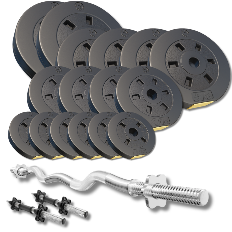 Набір зі штангою та гантелями Besport PowerPro 66 кг з w-подібним грифом 120 см