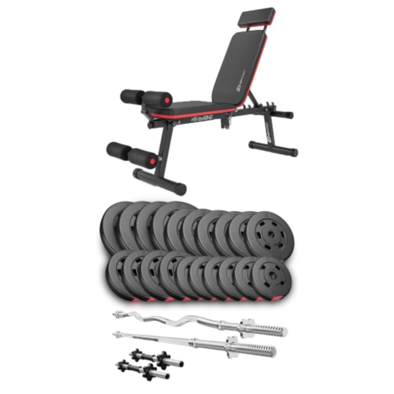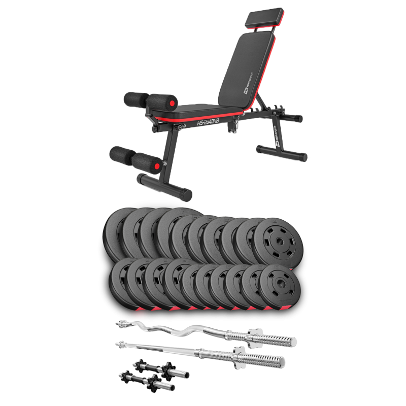 Набір Premium 105 кг зі штангами і лавою HS-2040 HB - ідеально підібраний комплект з функціональною лавкою і найкращим поєднанням кількості і ваги дисків, щоб організувати вдома повноцінний спортзал для силових тренувань.