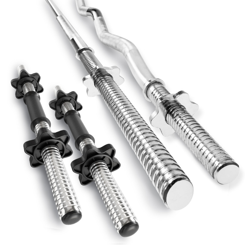 Грифи для штанги виготовлені зі сталі високої якості і без зусиль витримують високе навантаження. Хромоване покриття не тільки забезпечує грифу привабливий зовнішній вигляд, але і захищає метал від іржі.