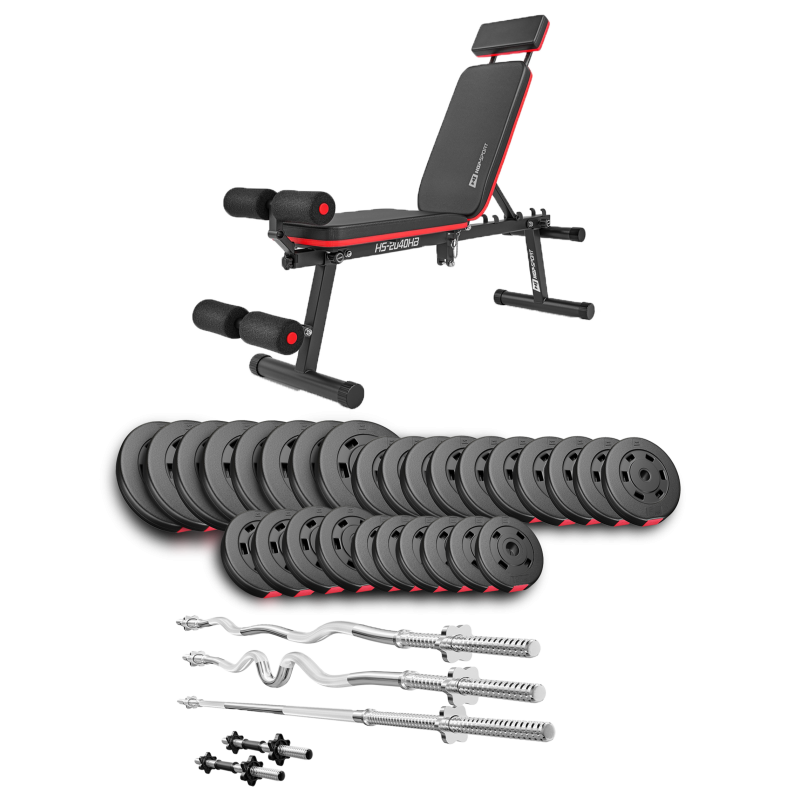 Набір Premium 173 кг зі штангами і лавою HS-1035 - ідеально підібраний комплект з функціональною лавкою і найкращим поєднанням кількості і ваги дисків, щоб організувати вдома повноцінний спортзал для силових тренувань.