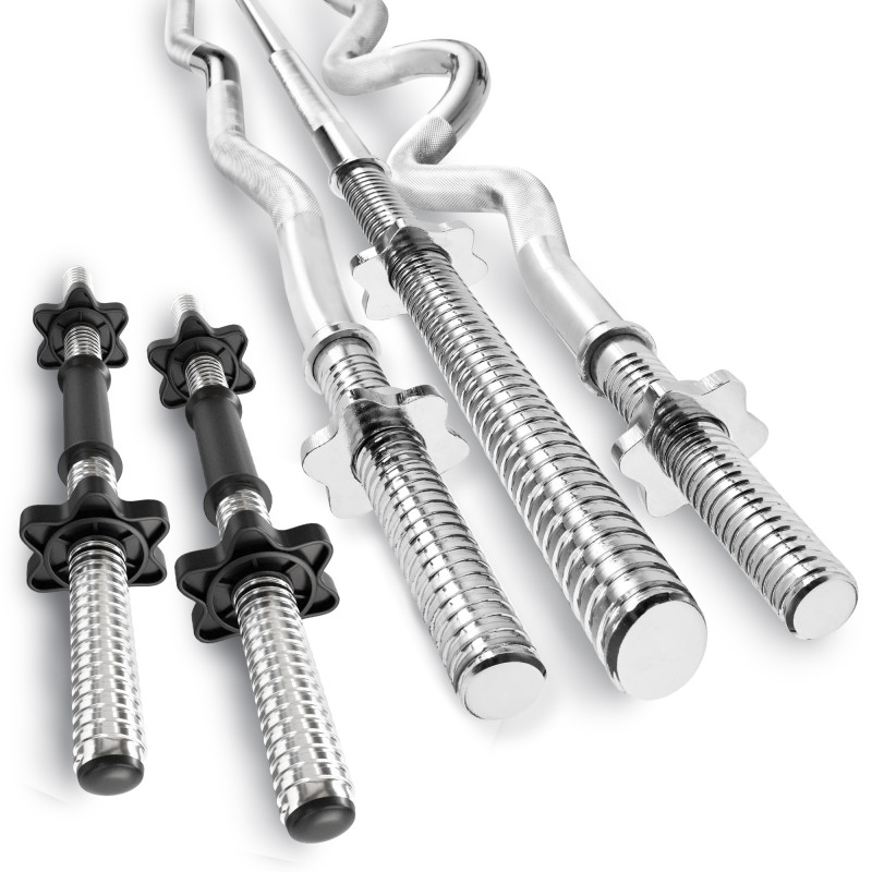 Грифи для штанги виготовлені зі сталі високої якості і без зусиль витримують високе навантаження. Хромоване покриття не тільки забезпечує грифу привабливий зовнішній вигляд, але і захищає метал від іржі.