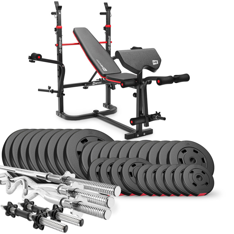 Набір Premium 173 кг зі штангами, гантелями і лавою HS-1065HB Pro - ідеально підібраний комплект з функціональною лавкою і найкращим поєднанням кількості і ваги дисків, щоб організувати вдома повноцінний спортзал для силових тренувань.