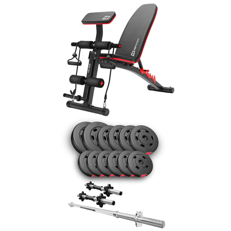 Набір Premium 38 кг зі штангою і лавою HS-1035 - ідеально підібраний комплект з функціональною лавкою і найкращим поєднанням кількості і ваги дисків, щоб організувати вдома повноцінний спортзал для силових тренувань.