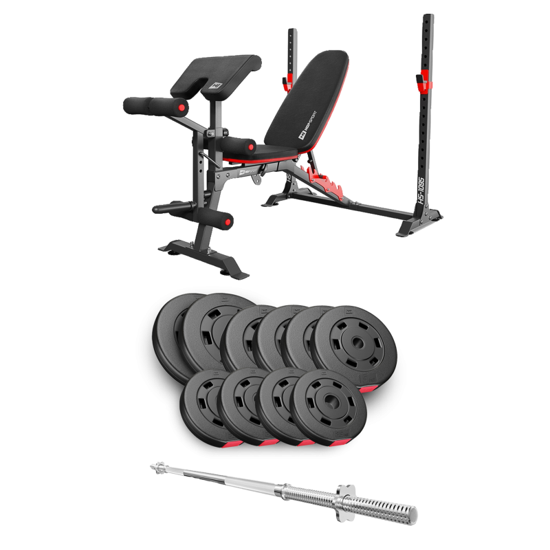 Набір Premium 59 кг зі штангою і лавою HS-1095 - ідеально підібраний комплект з функціональною лавкою і найкращим поєднанням кількості і ваги дисків, щоб організувати вдома повноцінний спортзал для силових тренувань.