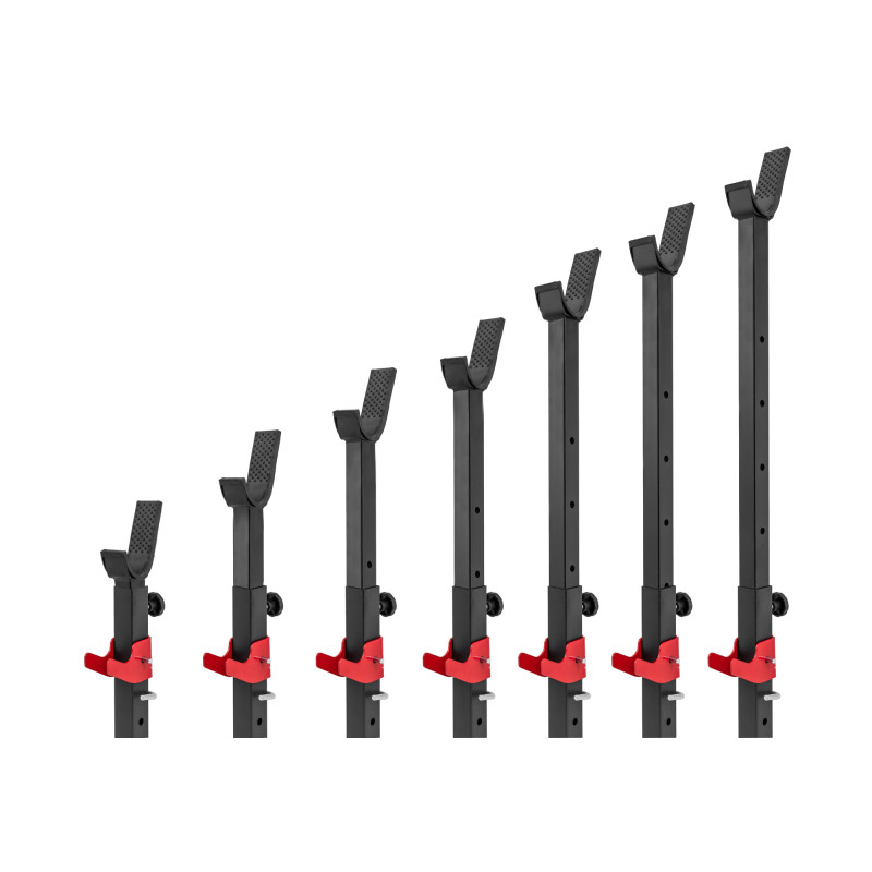 - два рівні регулювання запобіжних вилок (65,7см і 75,7см) дозволять вам повністю налаштувати стійки під свої індивідуальні потреби