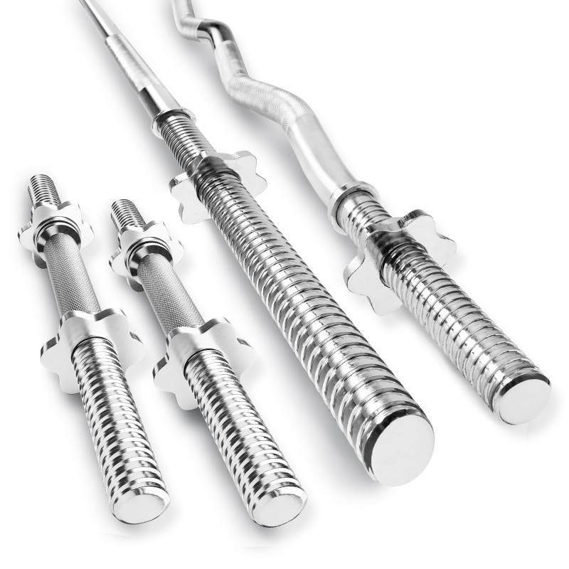 Грифи в цьому наборі відлиті з високоякісної хромованої сталі. Рифлені ділянки для хватів підвищують комфорт при виконанні тренувань. Ви можете бути впевнені у своїй безпеці, штанга не вислизне з рук навіть під час інтенсивних тренувань.